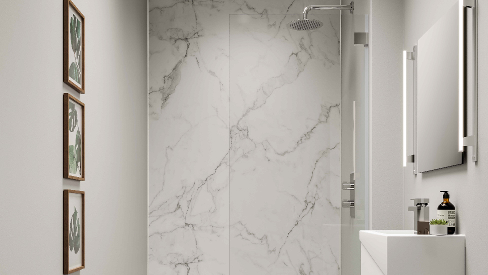 Nos panneaux muraux à effet minéral pour salles de bains offrent une alternative rapide et sans joint aux carreaux de céramique traditionnels.